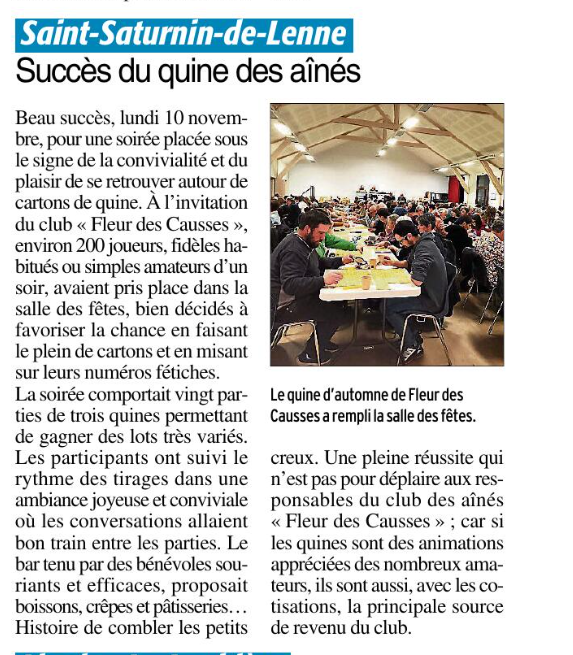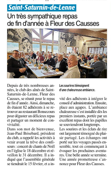 St Saturnin de Lenne "Paru sur centre presse le 10.12.25"