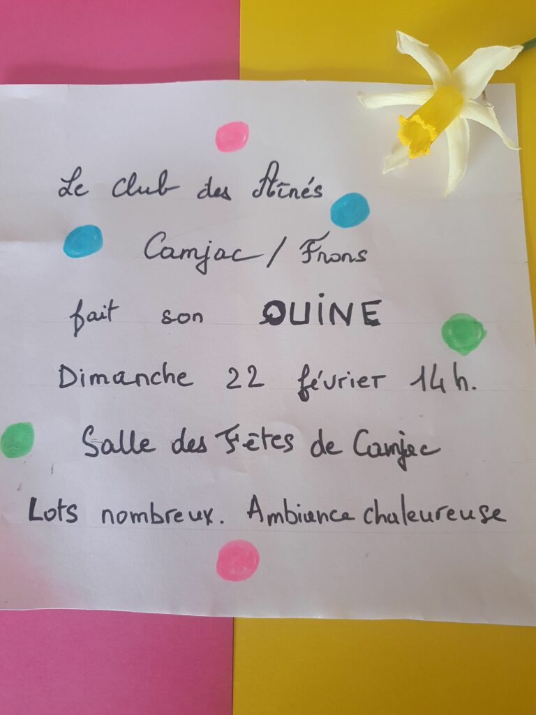 Camjac « quine » le 22 février à 14h Publication publiée :13 février 2026 Commentaires de la publication :0 commentaire Imprimer Vous devriez également aimer Naucelle « Quine » le 01 mars à 14h 22 février 2026 Flavin « Belote » le 06 février à 20h30 1 février 2026 St Laurent d’Olt « Après midi dansant » le 08 février à 14h30 3 février 2026 Laisser un commentaire Annuler la réponseCommentEnter your name or username to comment Enter your email address to comment Saisir l’URL de votre site (facultatif) Enregistrer mon nom, mon e-mail et mon site dans le navigateur pour mon prochain commentaire.
