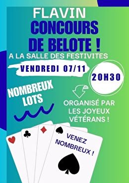 Flavin « Belote » le 07 novembre à 20h30 Publication publiée :6 novembre 2025 Commentaires de la publication :0 commentaire Imprimer Vous devriez également aimer Calmont « belote » le 23 mai à 20h30 22 mai 2025 Ceignac « Concours de belote » le Vendredi 25 avril à 20h30 19 avril 2025 FLAVIN » Concours de belote » Le 06 juin à 20h30 5 juin 2025 Laisser un commentaire Annuler la réponseCommentEnter your name or username to comment Enter your email address to comment Saisir l’URL de votre site (facultatif) Enregistrer mon nom, mon e-mail et mon site dans le navigateur pour mon prochain commentaire.