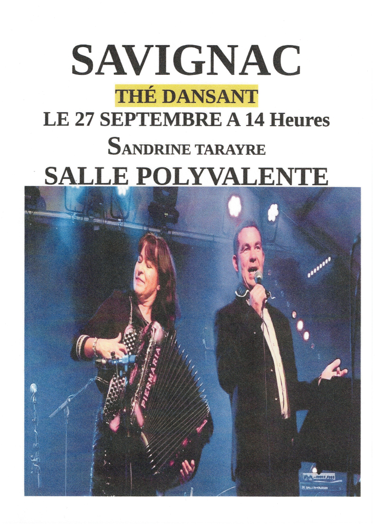 Savignac « Thé dansant » le 27 septembre à 14h Publication publiée :20 septembre 2025 Commentaires de la publication :0 commentaire Imprimer Vous devriez également aimer Luc La Primaube « Thé dansant » le 25 novembre à 14h30 22 novembre 2025 Druelle Balsac « Thé dansant avec Sylvie Pulles » le 7 octobre à 14h30 3 octobre 2025 Savignac « Thé dansant » le 26 avril 19 avril 2025 Laisser un commentaire Annuler la réponseCommentEnter your name or username to comment Enter your email address to comment Saisir l’URL de votre site (facultatif) Enregistrer mon nom, mon e-mail et mon site dans le navigateur pour mon prochain commentaire.